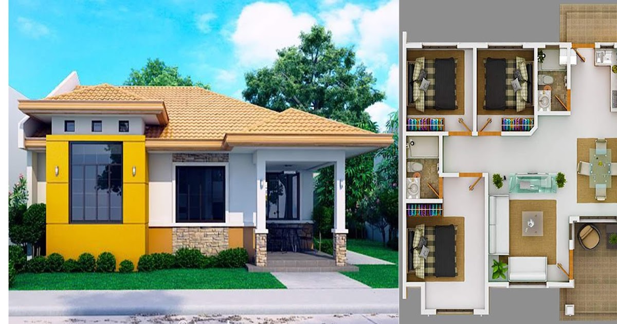 Bungalow House Design 3D Provided that you're capable, this modern bungalow house with 3d floor plans and firewall could be the best for you. Bungalow floor plan designs are typically simple, compact and longer than they are wide. This modern house design is great for a growing family as it has three bedrooms and two toilet and baths. Subscribe for more video 3d home ideathis small house perfect for a small family with a low budget house.