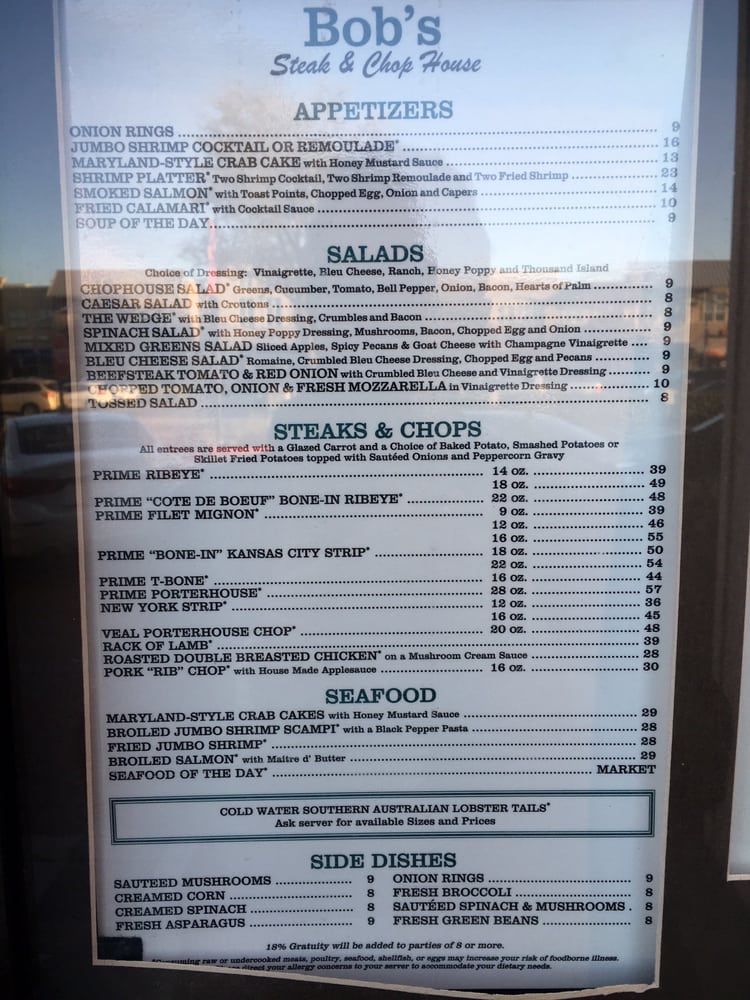 Find a bob's steak & chop house near you for specific menu information.